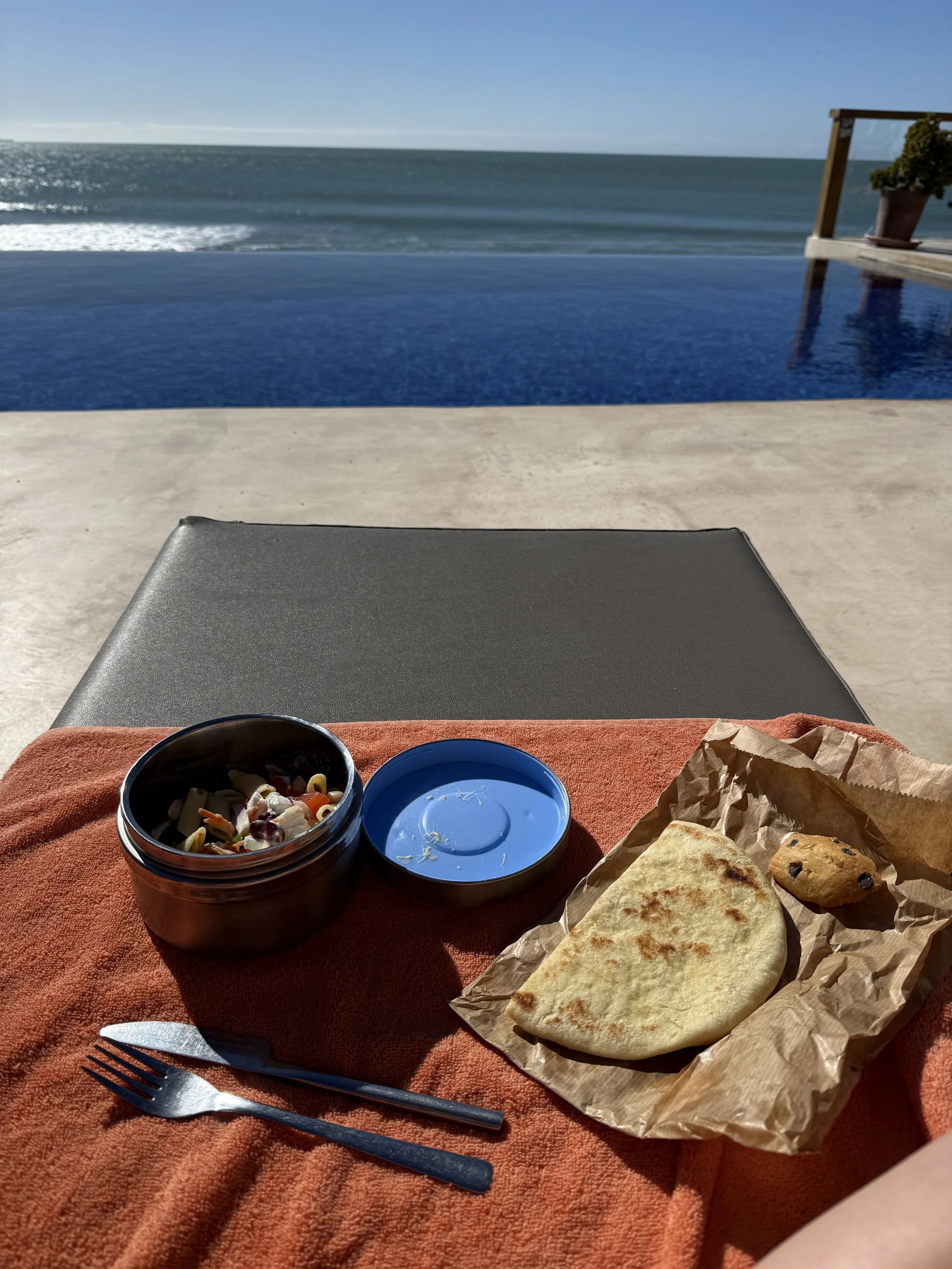 Lunch: "Tiffin-style" packed lunch by the pool (pro tip: fill your flatbread with the pasta salad!).