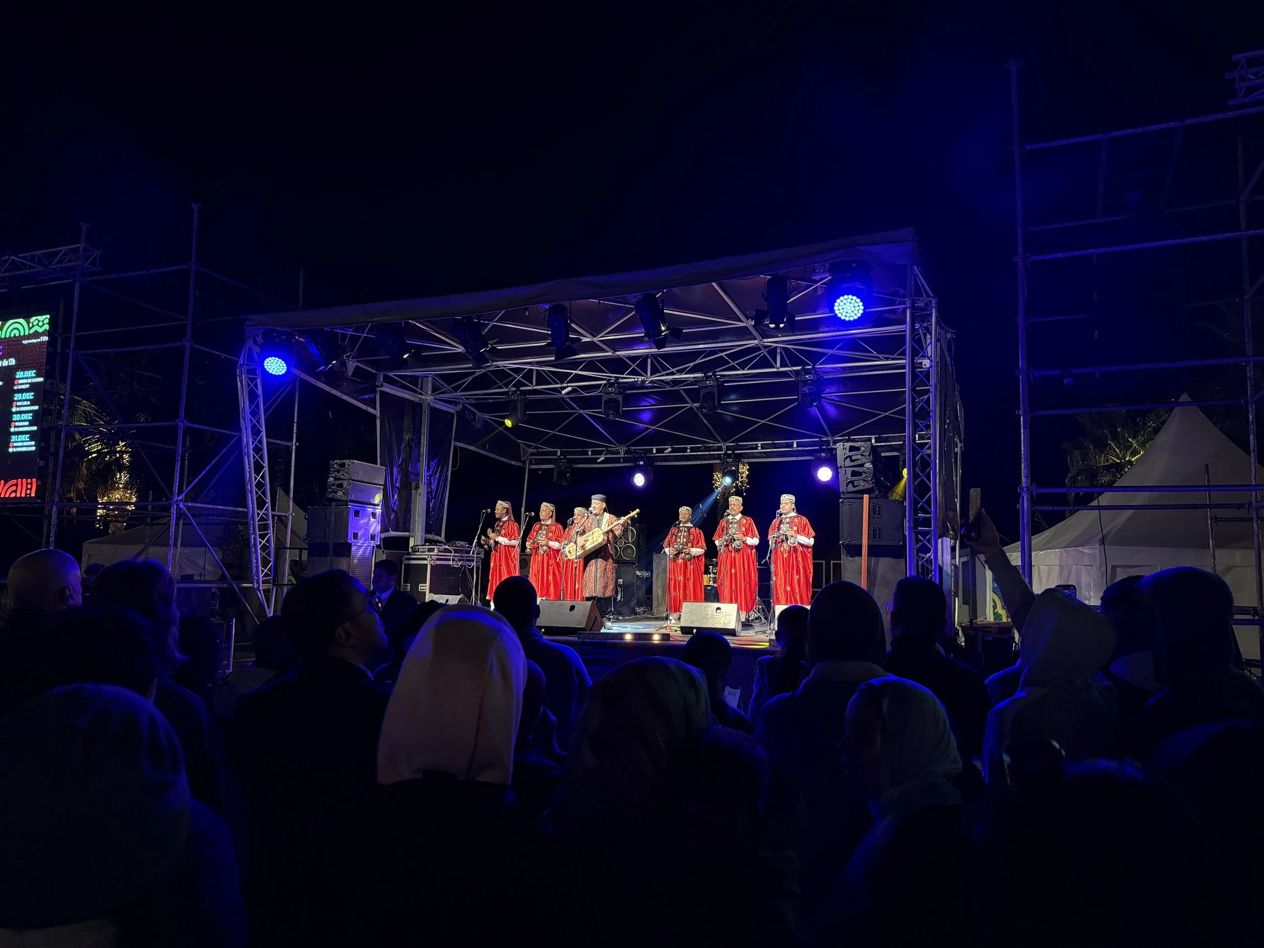 Night: Headed to Tagha Music Festival (20 - 31 December 2025) to catch The African Wave live music in celebration of the Africa Cup of Nations football tournament. The energy was electric! We saw Moroccan Gnawa musician Hamid El Kasri perform, who is traditionally considered a maâlem, or "master musician" - so fun!