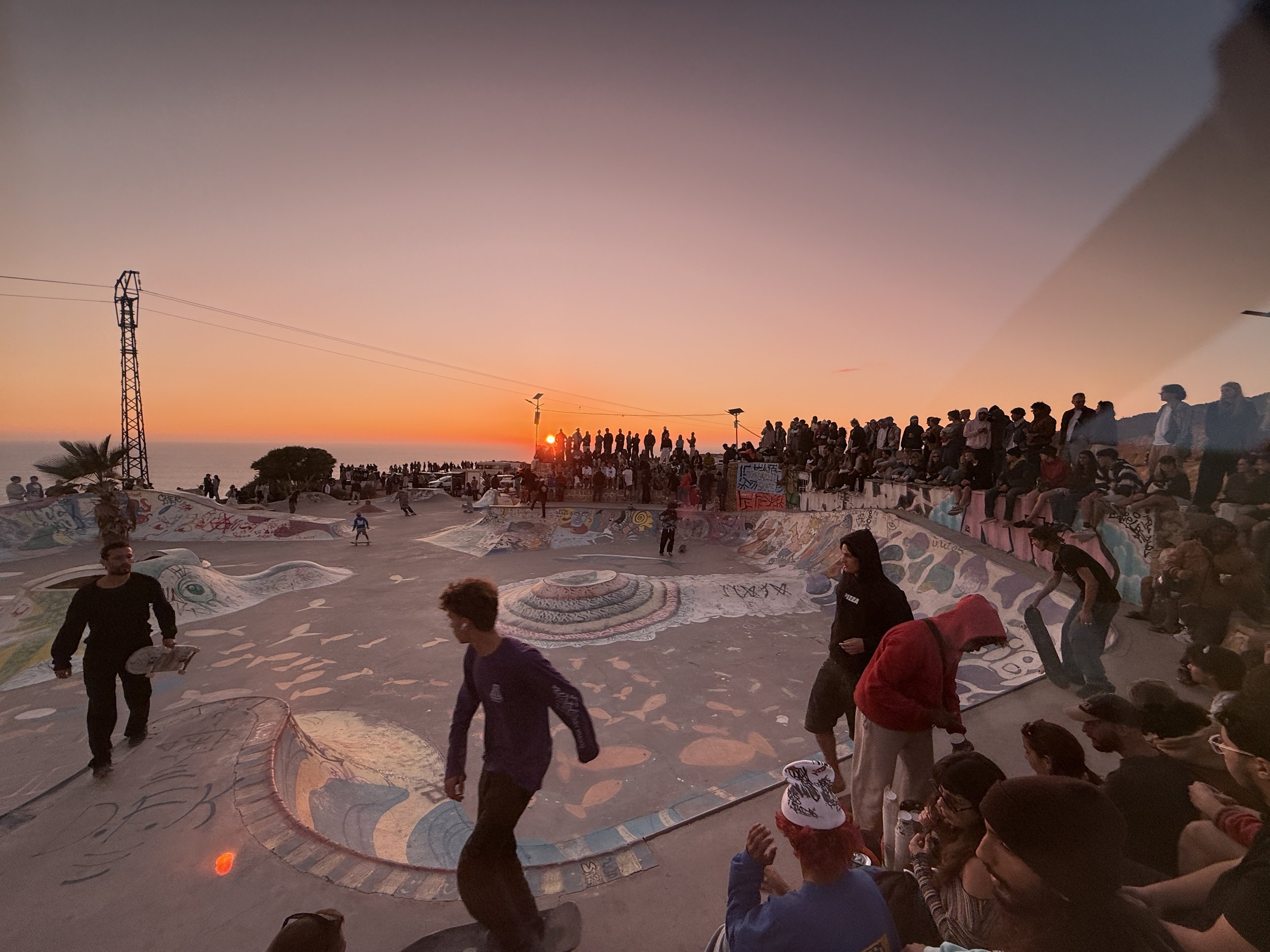 Sunset: Walked up the hill (15-20 mins) to Taghazout Skate Park.
