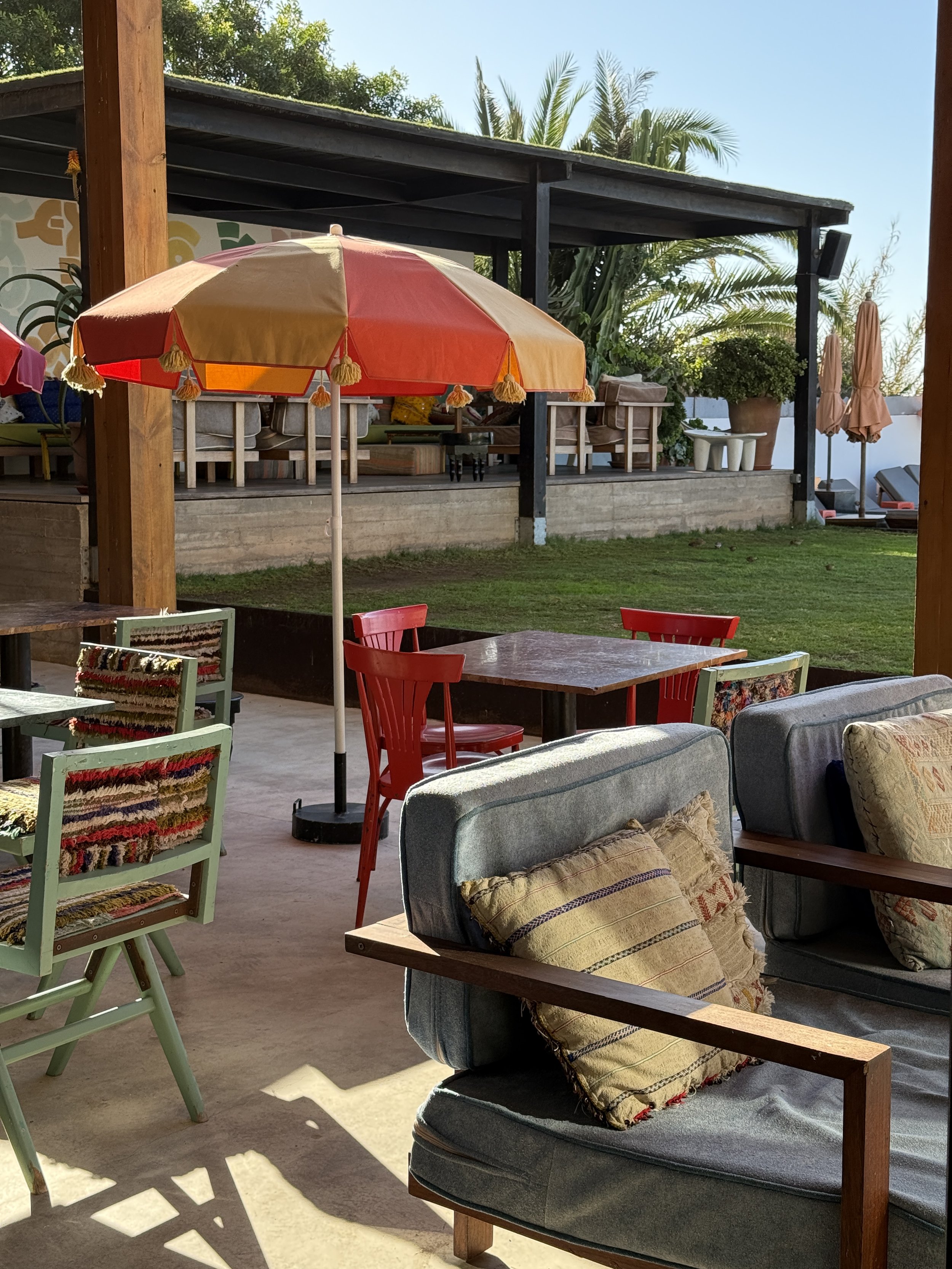 Pretty terrace at Amouage by Surf Maroc, a cosy outdoor spot perfect for morning coffee or evening family-style dinners